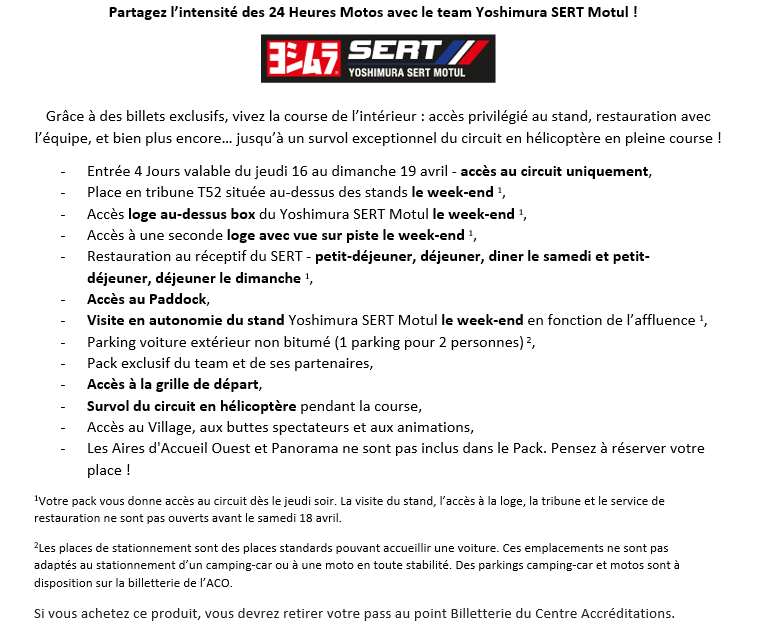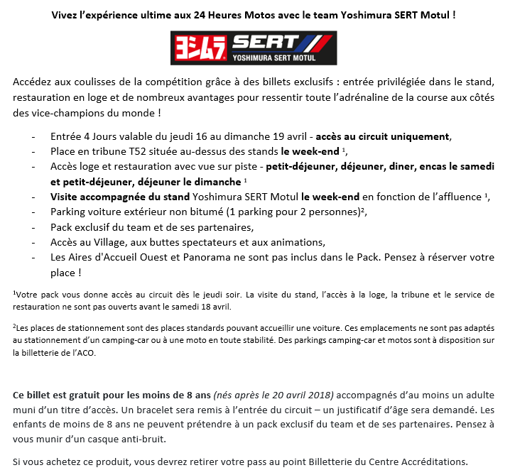 By confirming your order, you agree to be contacted by SERT regarding the En Piste pour Le Mans offer in order to obtain any information related to your order.